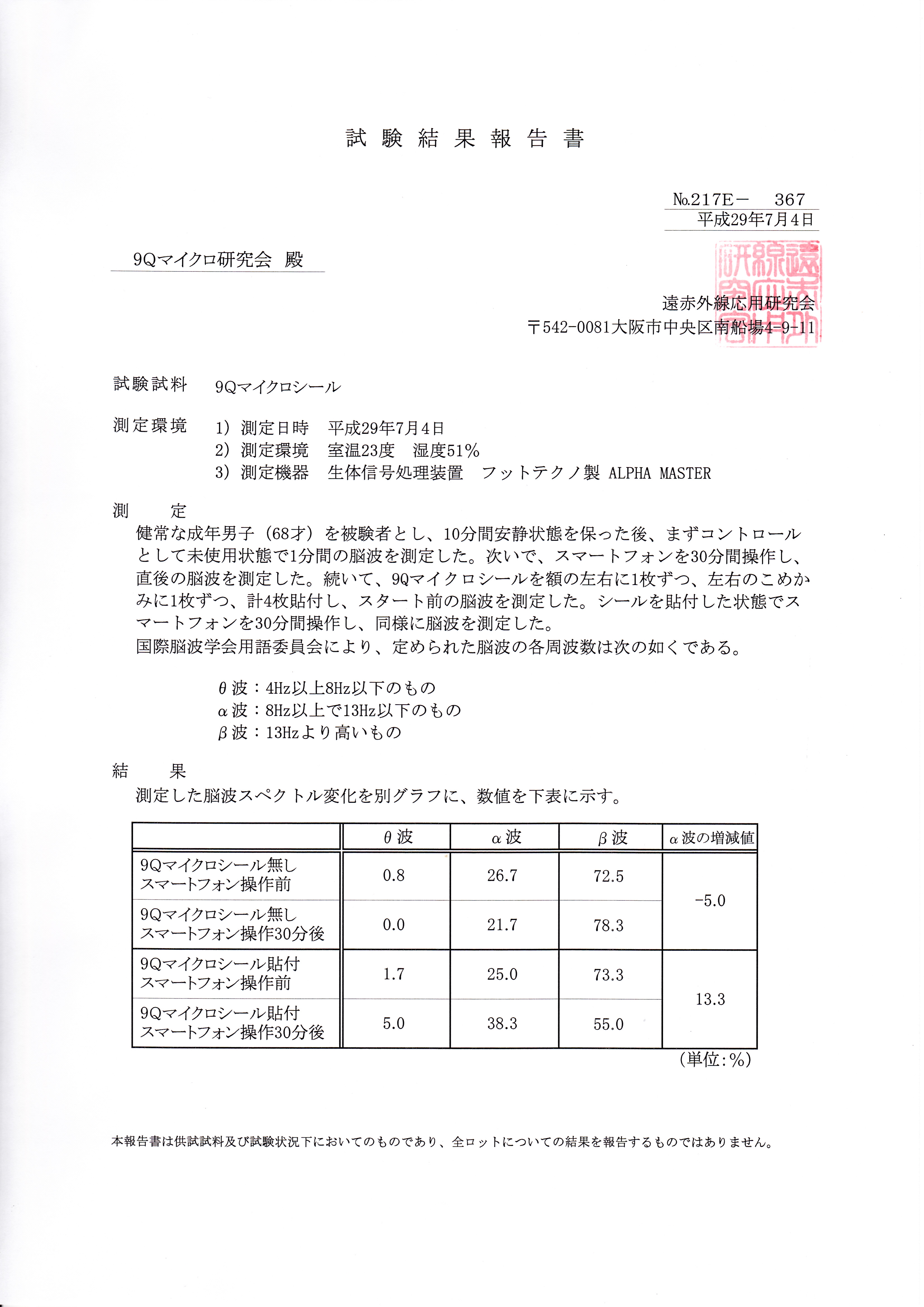 9Qマイクロシールは脳波にも良い影響を与える実験結果が出ており、あらゆる電子機器が必需品となる現代の救世主といえます。